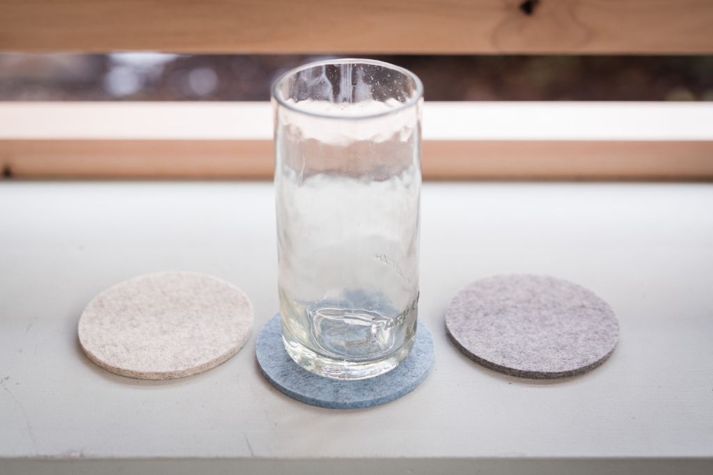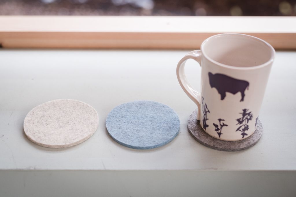 4" x 4" coasters felted from Merino wool. Set of 4.