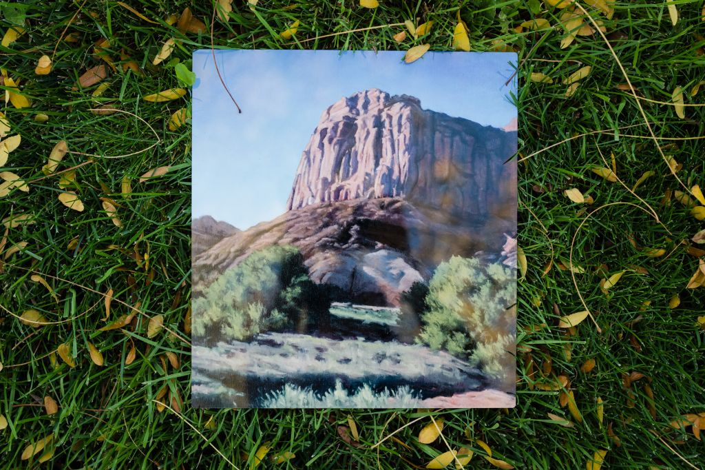 Oil painter Chase McCleary prints her images on metal as well as paper. These metal images are locally printed and ready to hang. Inspired by a trip to Capitol Reef.
